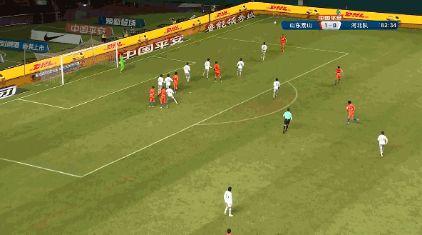 比赛进行到20分钟时,禁区里右侧的金敬道得球,挑传小禁区里左侧,费莱尼顺势右脚抽射得分;第83分钟时,徐新补射再进一球,从而帮助泰山队锁定胜局!