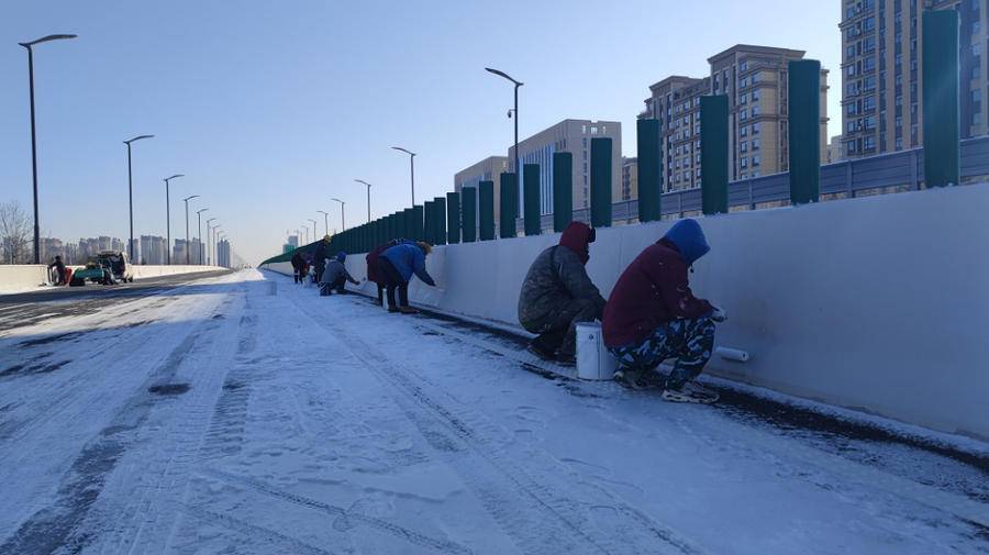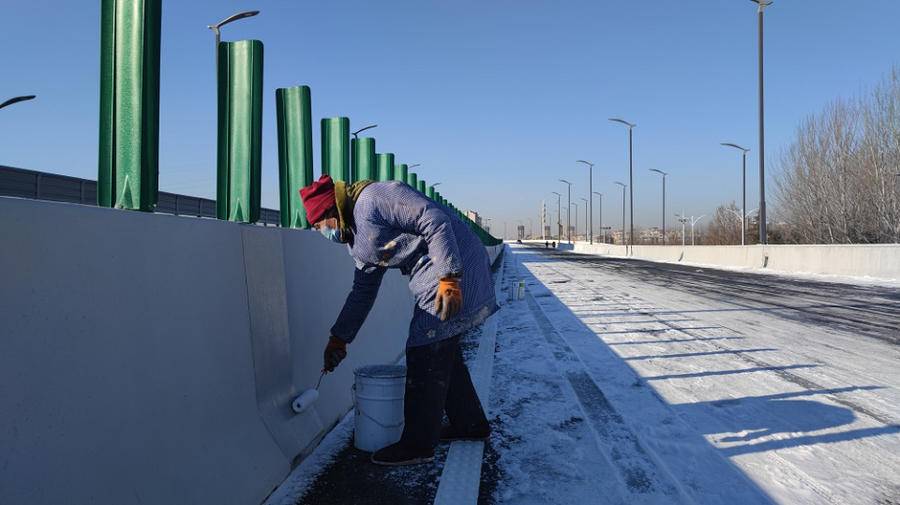 历经一年的等待,这项万众瞩目的大工程终于迎来最后的亮相时刻。与此同时的施工现场仍旧没有片刻停歇。27日上午,记者来到宝通街快速路与新华路交叉口路段,体验零下雪地里的涂装作业。