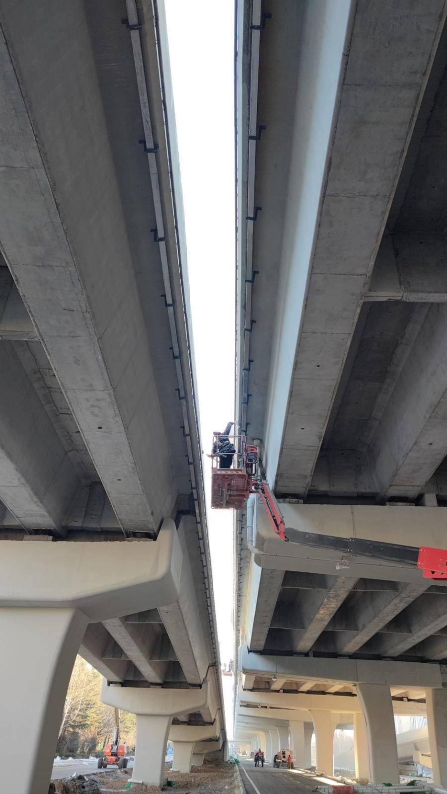 升降台上工作的不仅是涂装工作人员,还有其他工种。工作人员王先生负责的是伸缩缝的施工,在过去的一个月中,他说自己主要负责“上胶条和压板,上完以后打眼,然后再安装螺丝。”工作的过程虽然比较辛苦,但是李先生觉得自己的工作效率很高,宝通街快速路的建设也让潍坊越来越好,自己能够参与其中也很有成就感。