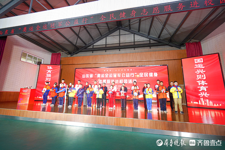 活动现场,冠军运动员代表还为日照市10所学校捐赠了体育用品,以此激发学生们参加体育运动的热情,弘扬爱国、超越、拼搏、合作的体育精神,促进少年儿童身体素质整体提升。