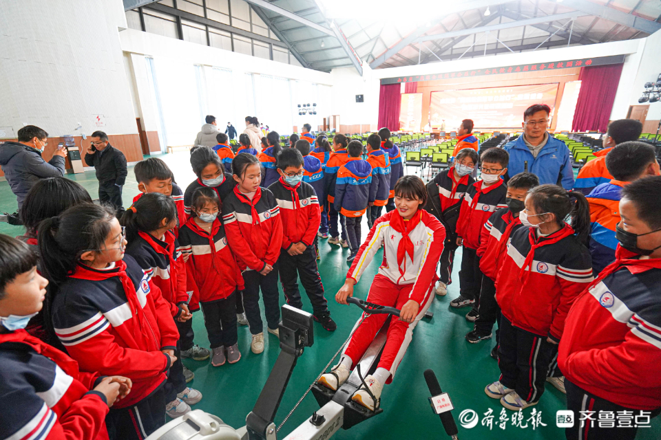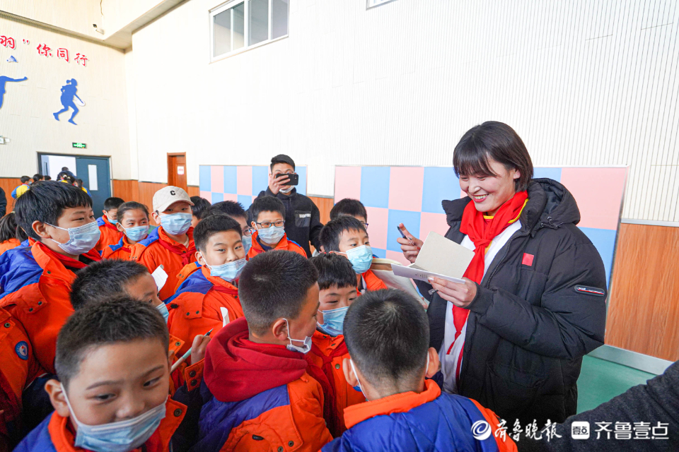 12月29日下午,山东省“奥运全运冠军公益行”全民健身志愿服务活动在日照市金海岸小学启动,奥运全运冠军运动员代表刘诗颖、以及全运冠军运动员代表杨哲、张敏、于丰铠、乔臻、李磊参加。