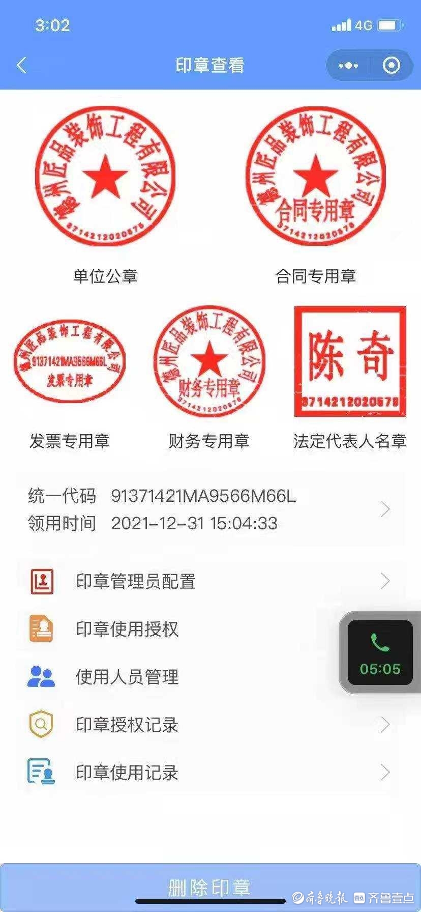 12月31日,德州匠品装饰工程有限公司法人陈先生在企业开办专员指导下,不到两分钟的时间就在“电子营业执照”小程序上领取到了公司电子营业执照和5枚免费电子印章。陈先生高兴地说道,“操作流程十分简单,一个小程序直接就能下载电子证和免费电子章,很便利也很有意义”。