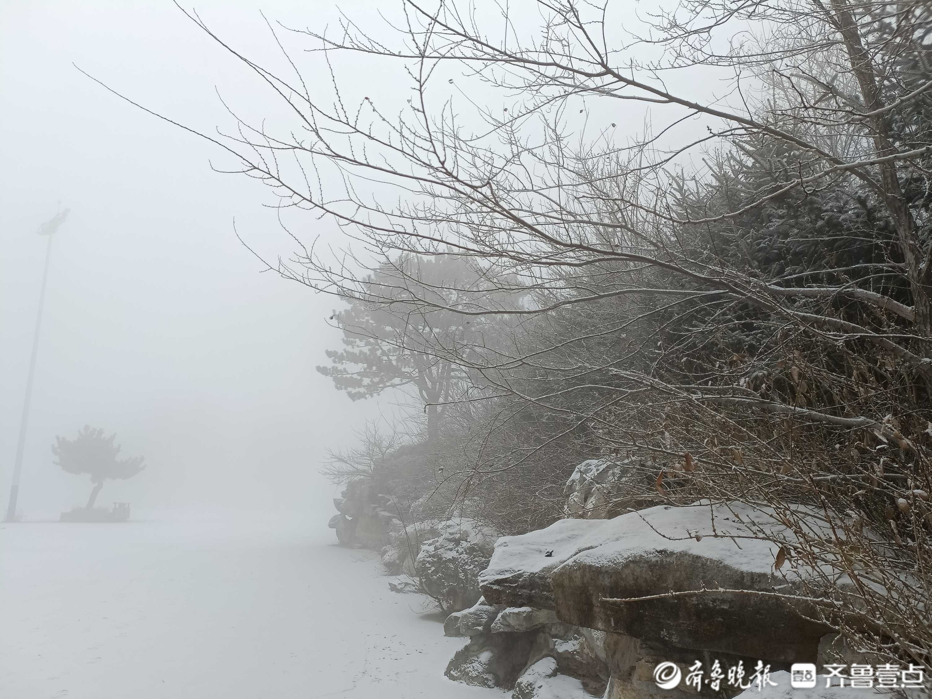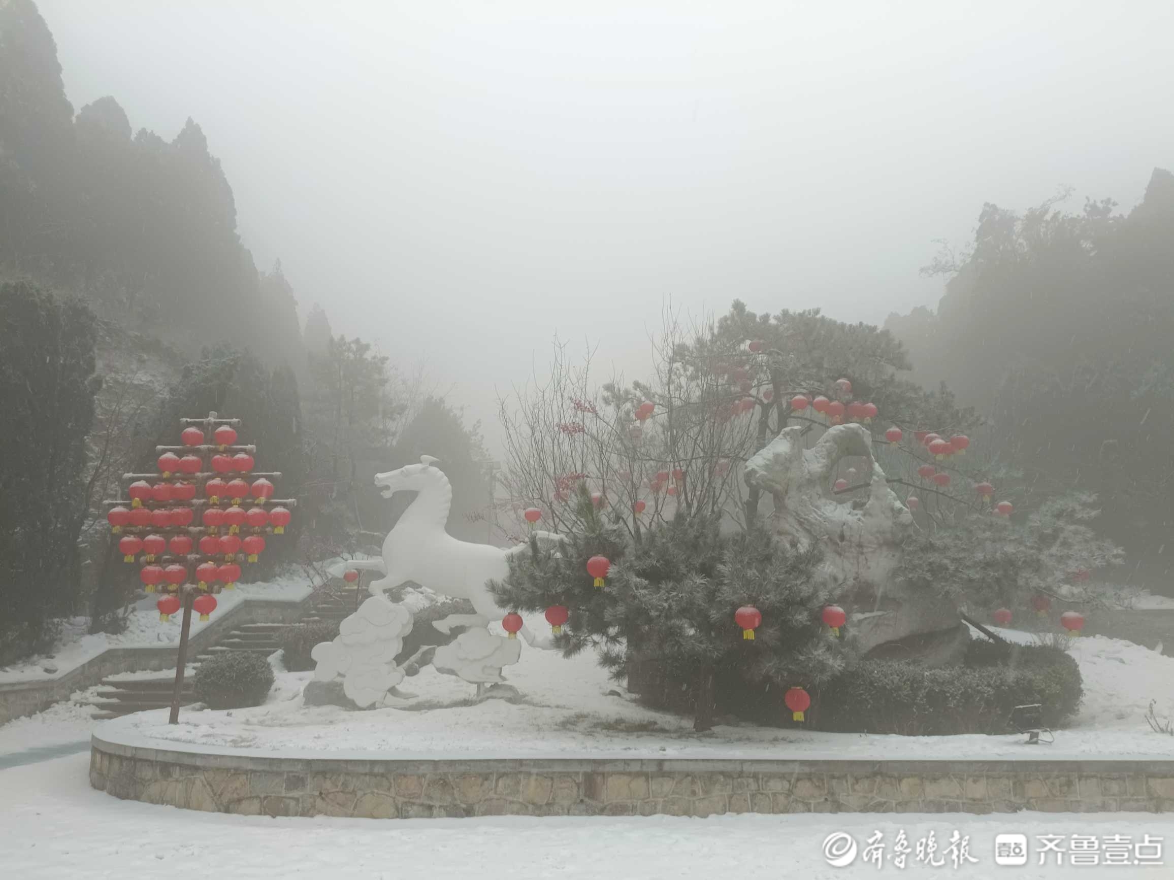 该景区工作人员称,2022年跑马岭首场降雪在清晨6点开始的。目前,整个景区白茫茫一片,是当之无愧的“齐鲁雪乡”。