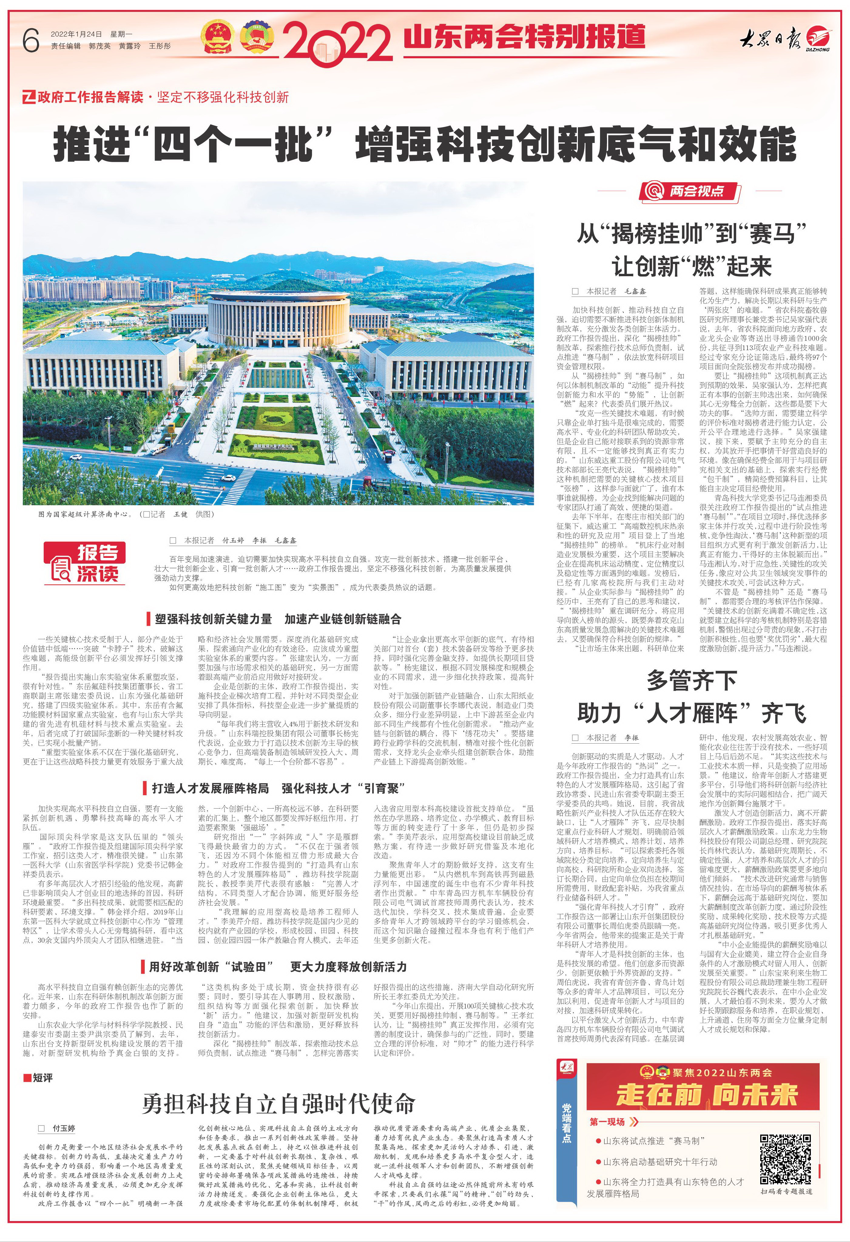2022年山东省政府工作报告提出,坚定不移强化科技创新,攻克一批创新技术、搭建一批创新平台、壮大一批创新企业、引育一批创新人才。