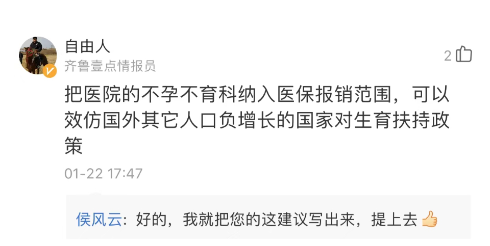 情报员“自由人”提问:把医院的不孕不育科纳入医保报销范围,可以效仿国外其它人口负增长的国家对生育扶持政策。