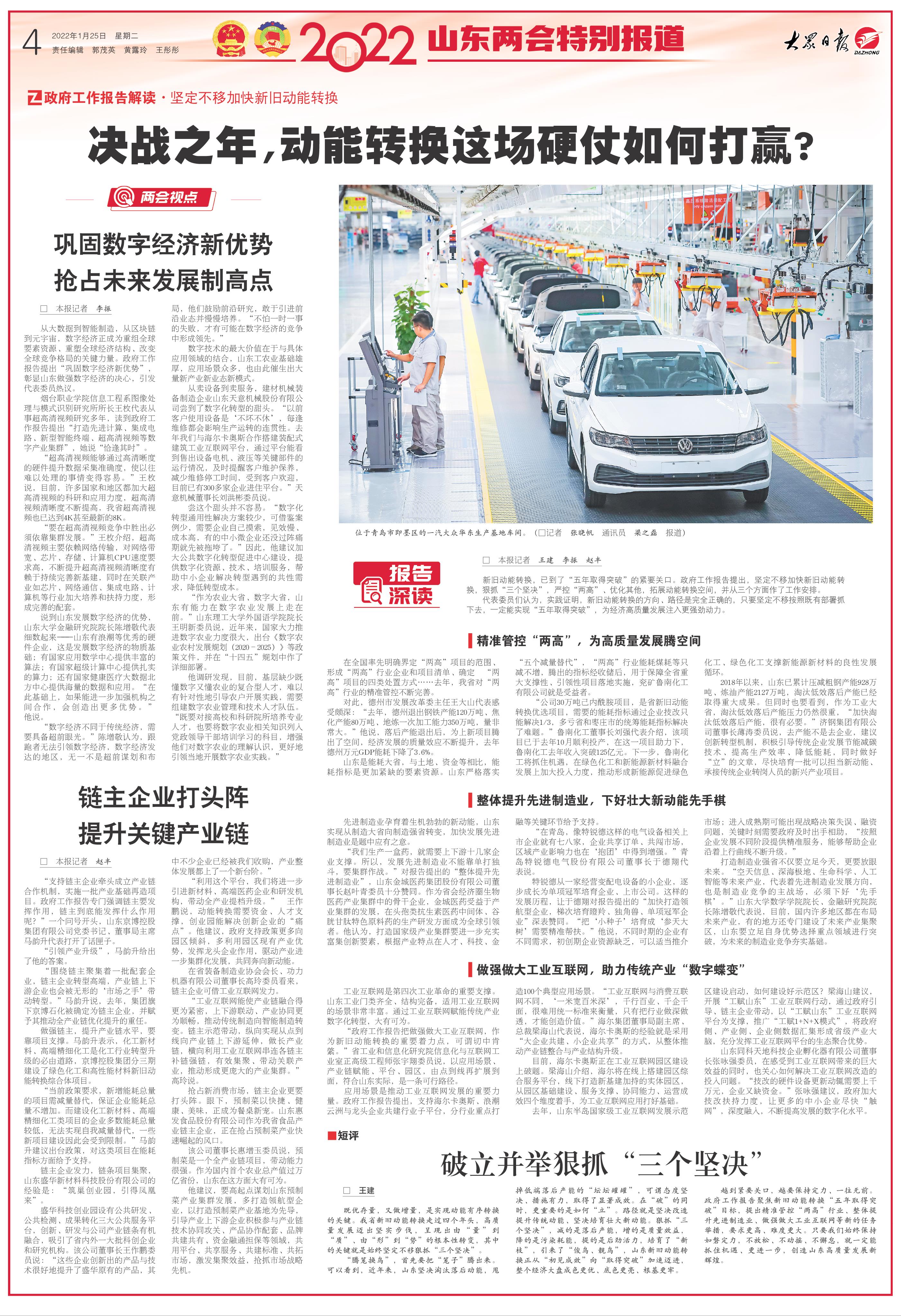 从大数据到智能制造,从区块链到元宇宙,数字经济正成为重组全球要素资源、重塑全球经济结构、改变全球竞争格局的关键力量。政府工作报告提出“巩固数字经济新优势”,彰显山东做强数字经济的决心,引发代表委员热议。