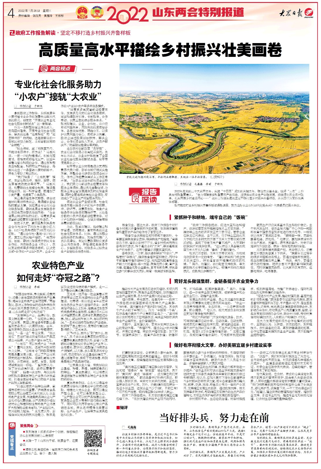 “全力保障粮食和重要农产品供给,加快推动农业全产业链发展,持续深化农业农村改革,扎实开展乡村建设行动……”政府工作报告提出坚定不移打造乡村振兴齐鲁样板,并从四个方面作出具体部署……