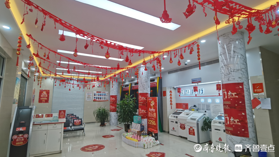 小张分理处首先开展网点形象工程,对营业部大厅进行装扮和美化。营业大厅挂满红灯笼和中国结,并摆放2022虎年吉祥礼品展台,突出活动氛围。另外持续开展活动,让客户感到温馨,觉得来小张分理处办业务,有回家的味道,推动营销工作更加顺畅和高效。