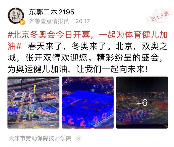 济南壹粉“东郭二木”:春天来了,冬奥来了。北京,双奥之城,张开双臂欢迎您。精彩纷呈的盛会,为奥运健儿加油,让我们一起向未来!