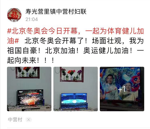 潍坊壹粉“寿光营里镇中营村妇联”:北京冬奥会开幕了!场面壮观,我为祖国自豪!北京加油!奥运健儿加油!一起向未来!