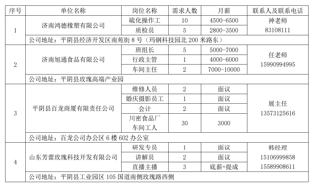 为做好保就业保民生的工作,为广大求职者与企业搭建双向平台,本场邀请6家企业参与线上招聘,正在找工作的你千万不要错过。平阴县公共就业和人才服务中心地址:平阴县锦东大街67号劳动大厦