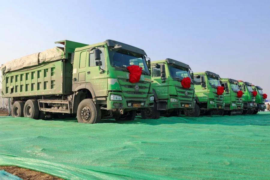 2月25日,日照高新区高端装备制造产业园内,重型卡车整装待命,挖掘机手臂抵地蓄势待发,只待一声令下便齐齐上阵。