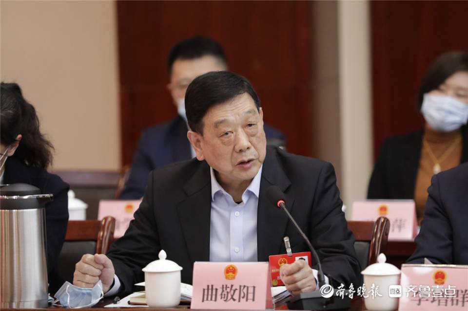 烟台市人大代表、烟台市芝罘区奇山街道长生社企联合党委书记、山东烟台长生集团有限公司董事长曲敬阳。 齐鲁晚报·齐鲁壹点记者 吕奇 摄