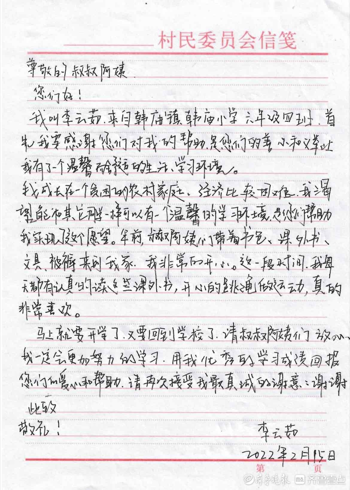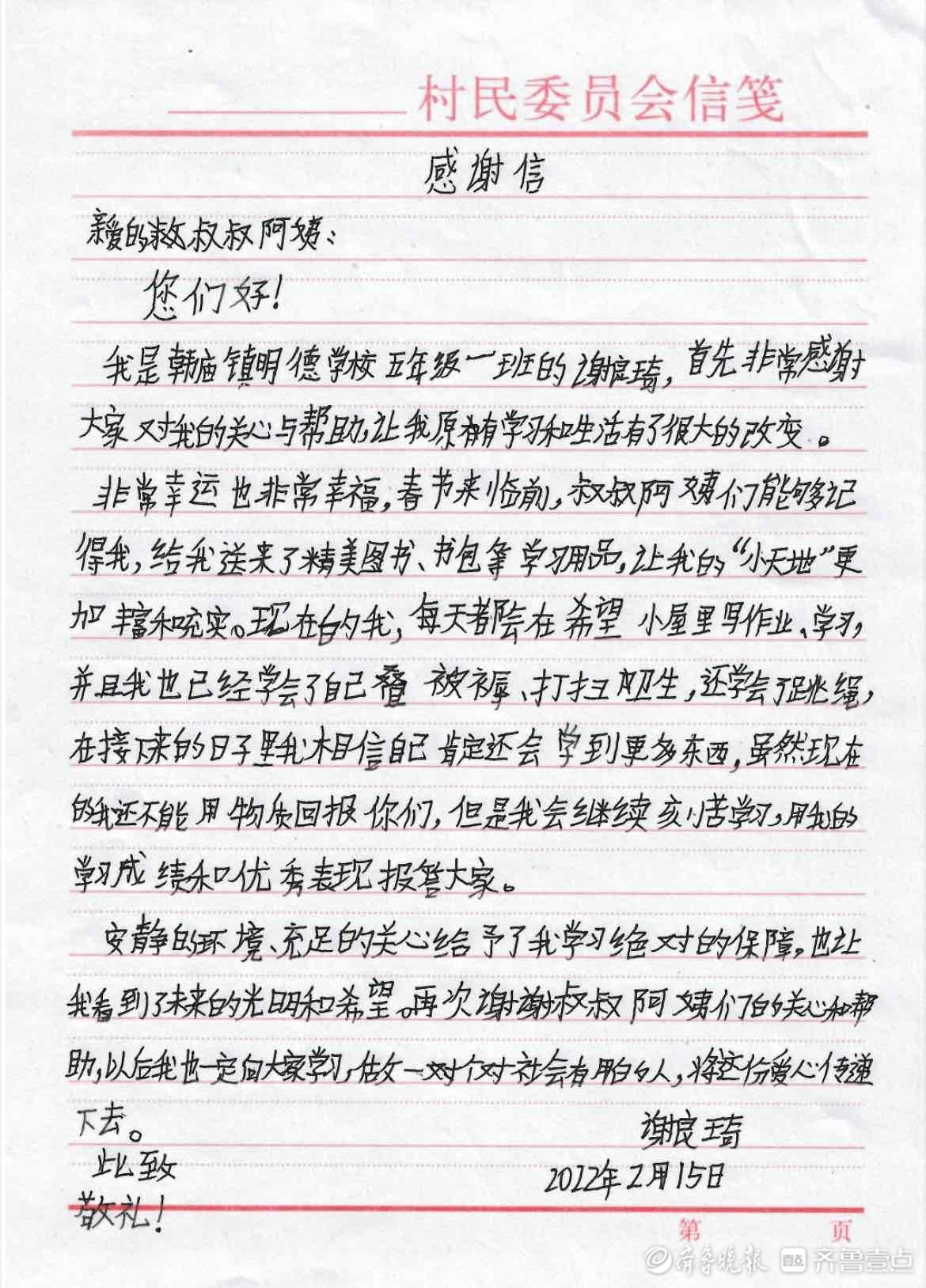 近日,齐鲁晚报·齐鲁壹点还收到了两封特殊的感谢信,她们用笔写下了自己的心里话。