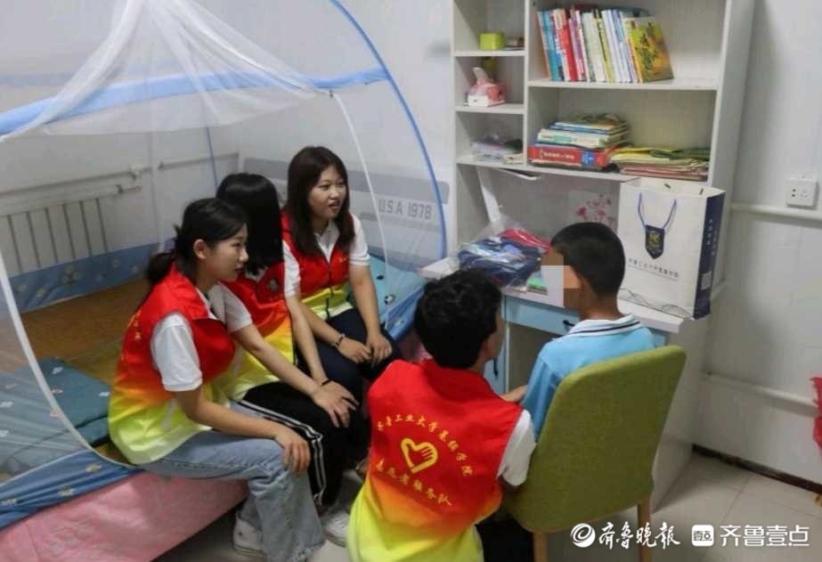 2021年7月,志愿者服务队来到济宁市任城区西正桥村,实地走访“希望小屋”的儿童,给孩子带去书包、彩笔等文具,鼓励孩子们努力学习,为他们提供心灵关爱。在交流过程中,大学生志愿者们还与孩子们互相留下联系方式,将帮扶工作延续到线上。