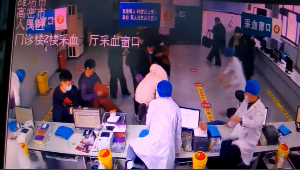 女子采血后突然晕倒在地,6名医护人员翻越柜台抢救
