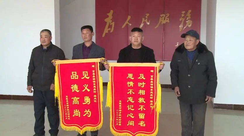 3月1日下午,日照五莲县石场乡旺岭村村村民王兴信一行,将两面锦旗送到了莒县桑园镇东苑庄村,感谢这个村村民蒋庆伦的救人善举。至此,一件发生在春节期间的暖心事才广为人知。