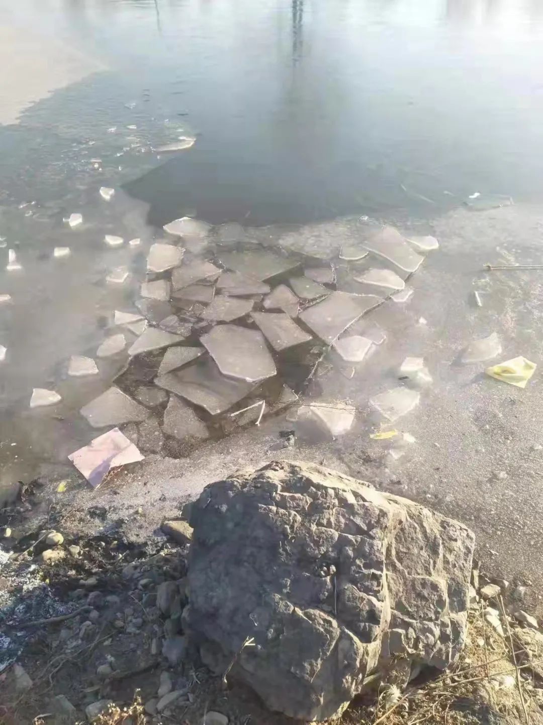 冰冷的水面到处都是冰,这给救援工作带来了困难。“当时我往外走不出来,摔倒倒了两次,冰挡着腿,用胳膊把冰一块块捣碎,一边倒一步步出来。”蒋庆伦告诉记者,这时,闻讯赶来的男孩家人正好看到了这暖心的一幕。