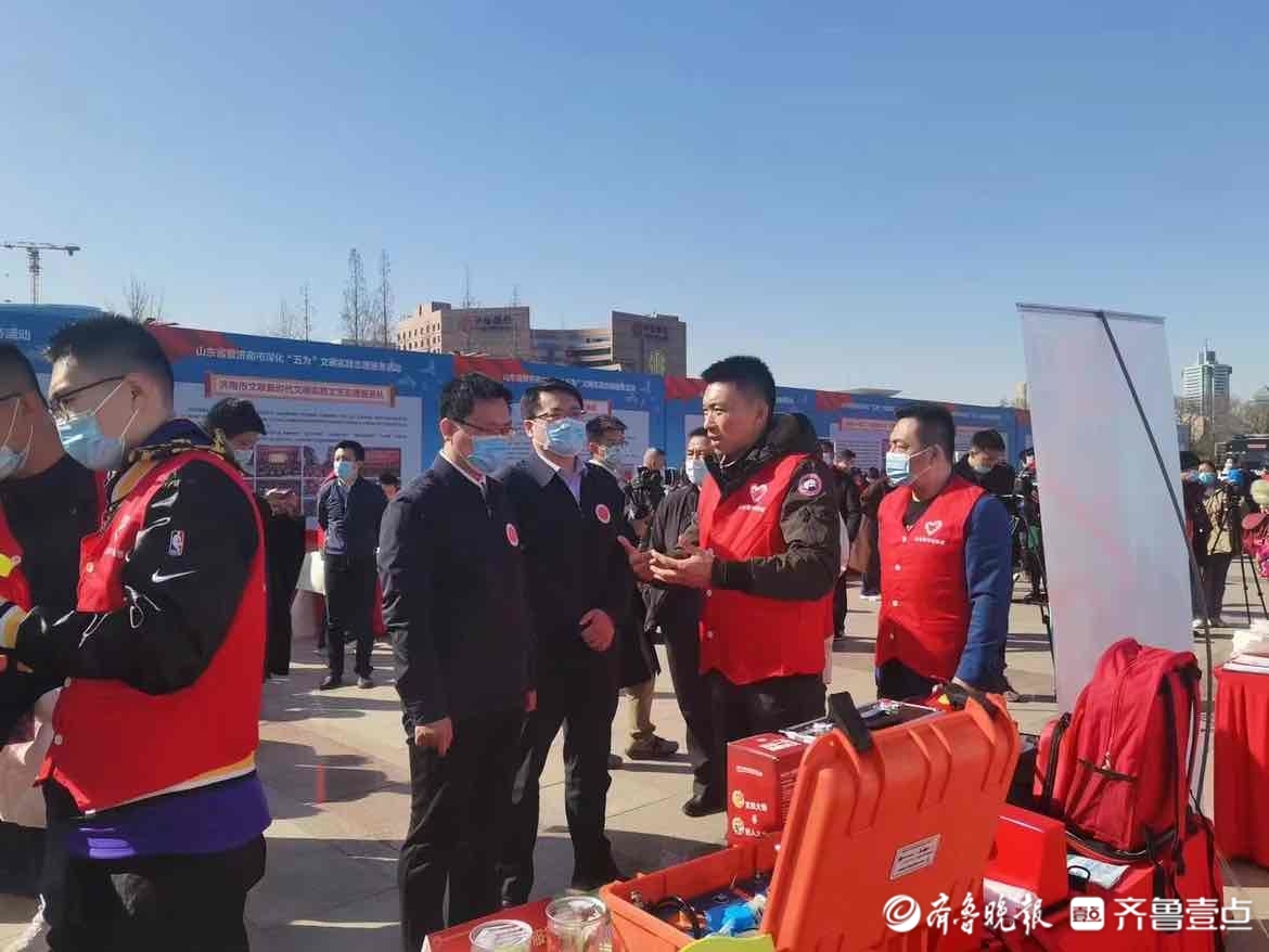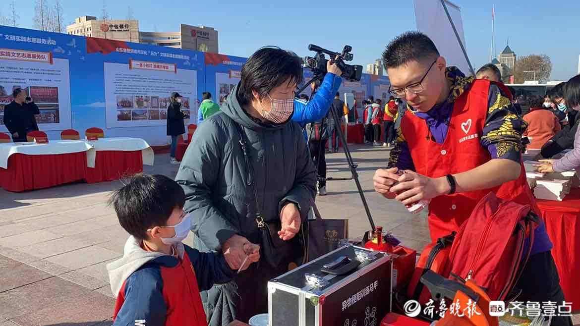 “一定要用掌心用力,一次按30下……” 在山东省暨济南市深化‘五为’文明实践志愿服务活动启动仪式的现场,山东省社会应急救援青年志愿服务队的志愿者正在模拟教学心肺复苏,七八个孩子围在志愿者身边,都准备亲手试一试。