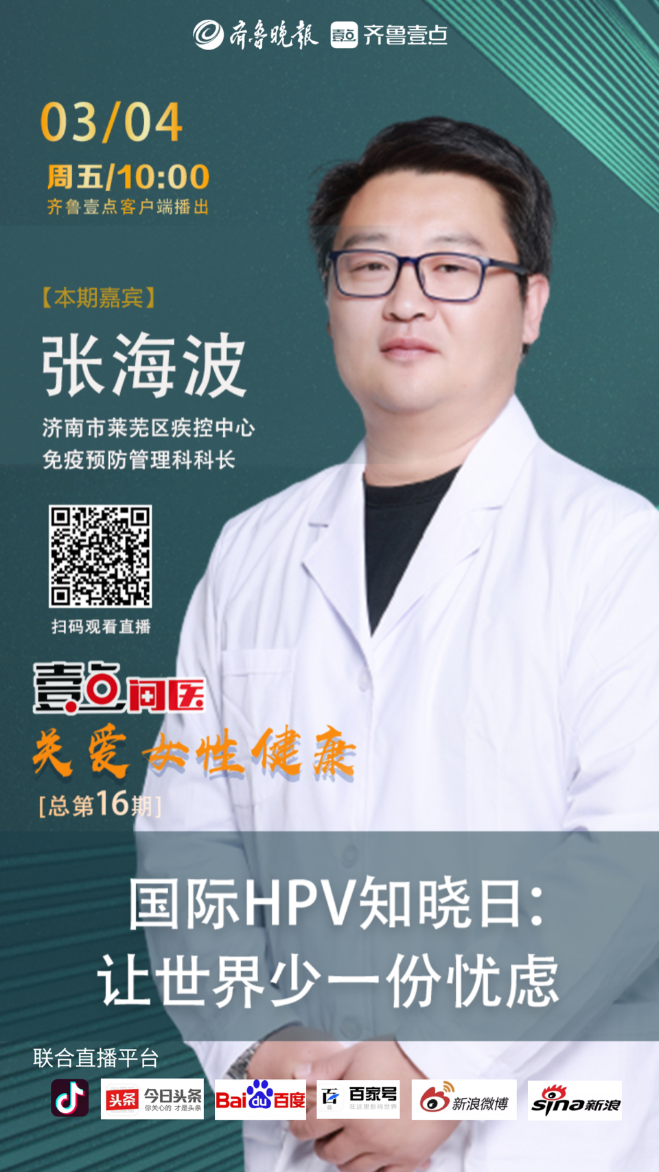 3月4日是国际HPV知晓日,今年的主题是“让世界少一份忧虑”。本期“壹点问医·关爱女性健康”直播专场邀请了莱芜区疾病预防控制中心免疫预防管理科科长张海波,来和大家一起聊聊HPV。