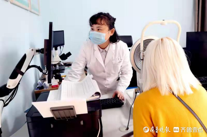 一走进徐玉敏医生的诊室,齐鲁晚报·齐鲁壹点的记者便被电脑屏幕上被放大的眼睛所吸引,相比于其他医生的办公室,徐玉敏的办公室里电子设备更多,她告诉记者,这些都是为了更好地服务患者,使用大屏幕也是让患者能更清楚直观地了解自己的眼部状况。从事眼科工作十余年,徐玉敏有着丰富的临床经验,擅长白内障、青光眼、翼状胬肉、泪道手术、干眼症等疾病的诊断与治疗。