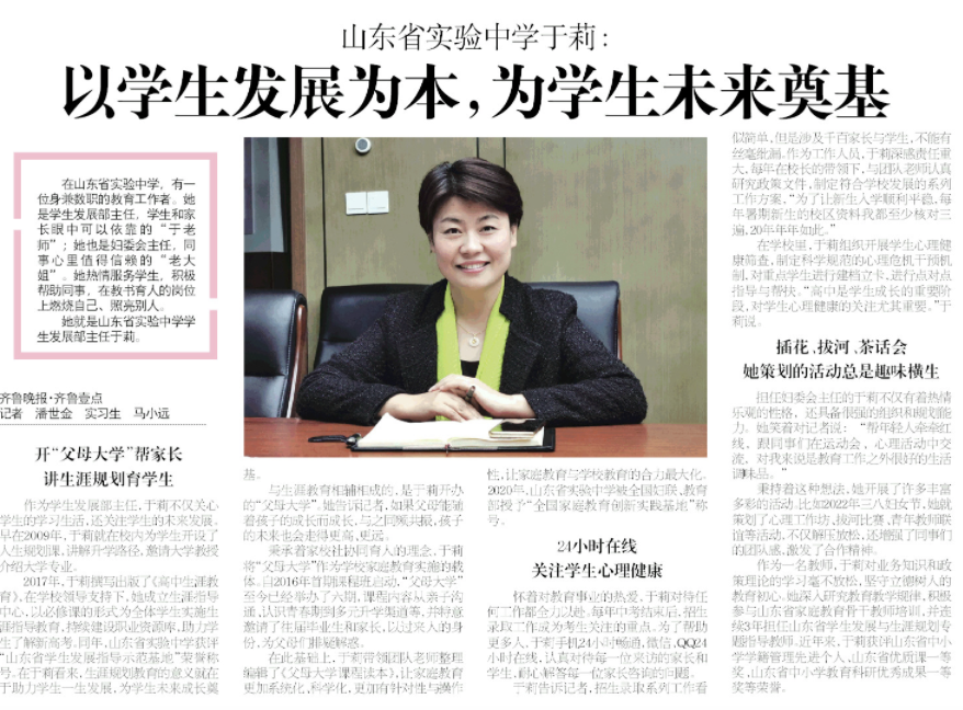春风如你|山东省实验中学于莉:为学生未来发展奠基