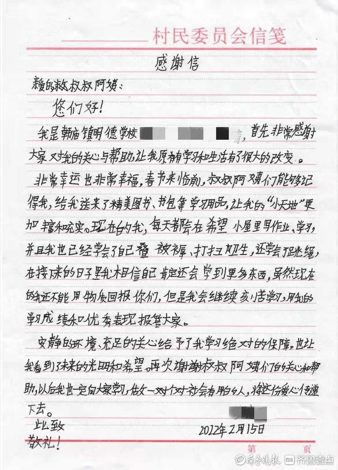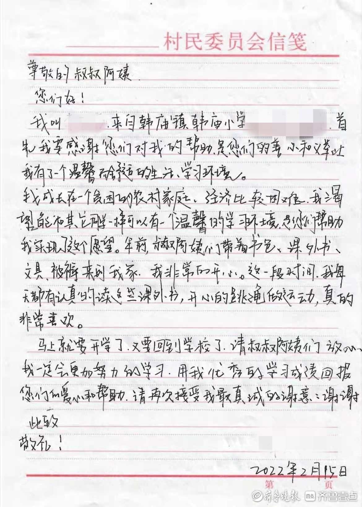 一册册图书,传递一份份温暖。在2022年开年,齐鲁晚报·齐鲁壹点收到了两封特殊的感谢信。他们是来自济南市商河县韩庙镇的两名小学生,也是壹点公益2021年首批建起爱心图书角的“希望小屋”的孩子们。他们在信中写下了对书籍的渴望和对爱心人士的感激,并表示会用优秀的学习成绩回报叔叔阿姨的爱心和帮助,长大后将爱心传递下去。