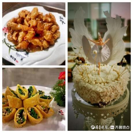 高文平老师从理论开始,细致入微的为大家讲解重点难点,并现场演示,教给大家制作了红烧瓦块鱼、糖醋里脊、炸春卷、生炒鸡四道菜品。面点师带领大家制作了蛋黄酥麻团、蛋黄酥、各色玫瑰花卷等中式面点和葡式蛋挞、水果蛋糕、提拉米苏、蓝莓慕斯等西式面点。