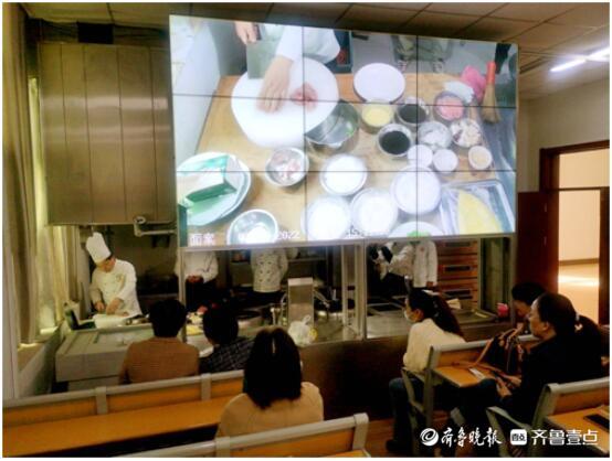 女教师们来到餐旅系,兴味盎然地参加“学烹饪技术,展女性风采”活动。活动邀请餐旅系齐鲁工匠高文平、中式面点技师李梦、西式面点技师程静,现场教大家制作美味菜肴和中西面点。