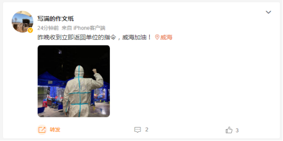 相较于2020年,此次疫情下的环翠人民重视但不慌乱。政府快速行动、精准出击,更让我们多了一分“稳”的底气。在线上,我们看到,大家踊跃转发着保供超市名单消息,将疫情防控工作对市民生活的影响降到最低。