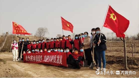 以党建带动少先队建设,商河贾庄中心小学师生参与公益植树