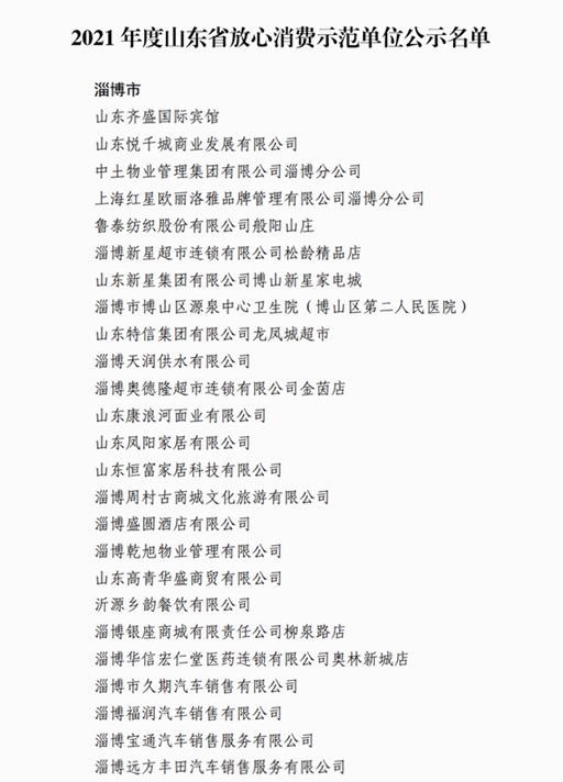 近日,山东省消费者权益保护工作联席会议办公室向社会公示2021年度山东省放心消费示范单位名单,淄博25家单位上榜。