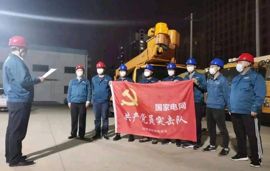 面对突如其来的疫情,国网威海供电公司第一时间启动应急响应,统筹部署抗疫保电工作,600余名职工到岗备战,其中党员返岗400余人,迅速构建起了以党员服务队、突击队、责任区及示范岗为主体的战疫保电网格,充分发挥党组织、党员的先锋模范作用。突击队员在队旗下庄严宣誓:牢记人民利益高于一切,坚持“人民电业为人民”宗旨,勠力同心,坚决打赢疫情防控攻坚战。