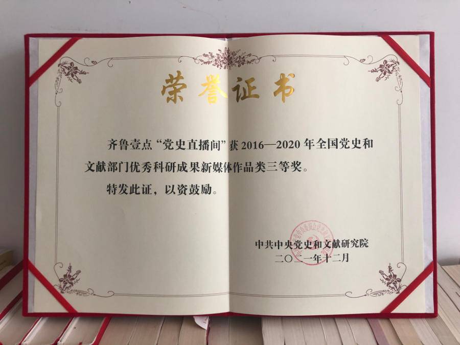 中央党史和文献研究院近日发布《关于表彰2016—2020年全国党史和文献部门优秀科研成果的决定》,齐鲁壹点“党史直播间”在“新媒体”类评选中获奖。