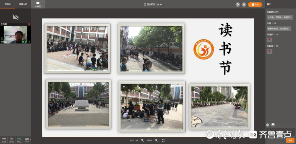 他整体介绍了东昌府区光明小学的阅读之路,以及对课外阅读的有效实施。东昌府区光明小学每月进行“四个一”展示,即每月一歌、每月一诵、每月一赏、每月一赛。诵读经典诗词,营造书香校园。东昌府区光明小学定期举办学生调研实践活动,清明节期间,学生自主完成的英烈调研报告荣登聊城市教育系统暨党史学习教育现场会舞台。