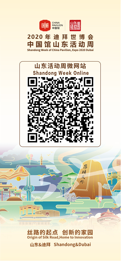 为全方位展示山东在经济、社会、文化、科技等领域取得的最新成果,推介山东发展新优势、新机遇,推动山东与阿拉伯及周边地区的深度合作,助力“一带一路”建设,2020迪拜世博会中国馆山东活动周(以下简称山东周)将于3月22日-24日在迪拜、山东两地同步举办。