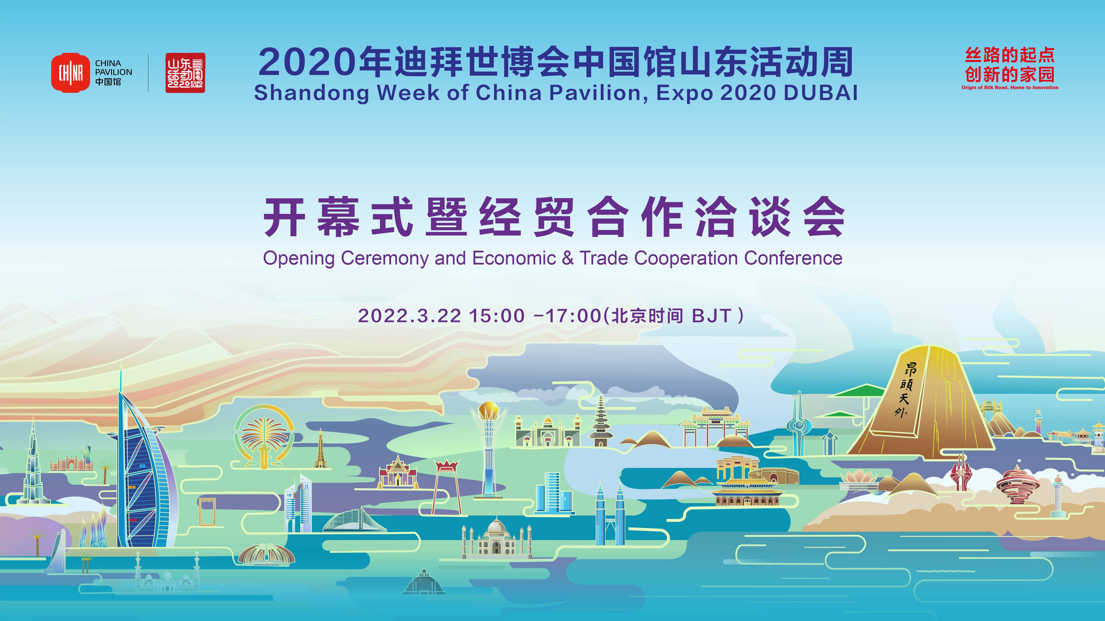 3月22日(周二)北京时间15:00,迪拜时间11:00,将举办2020迪拜世博会中国馆山东活动周开幕式暨经贸合作洽谈会。