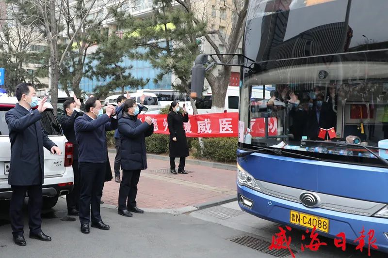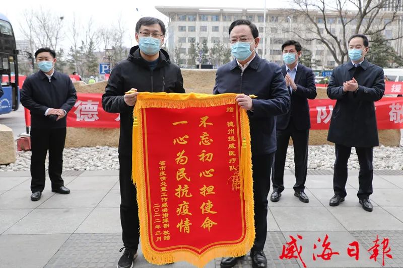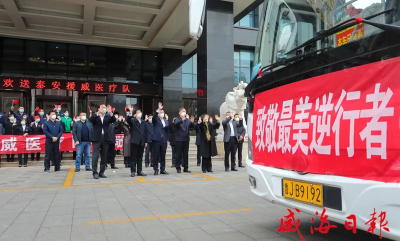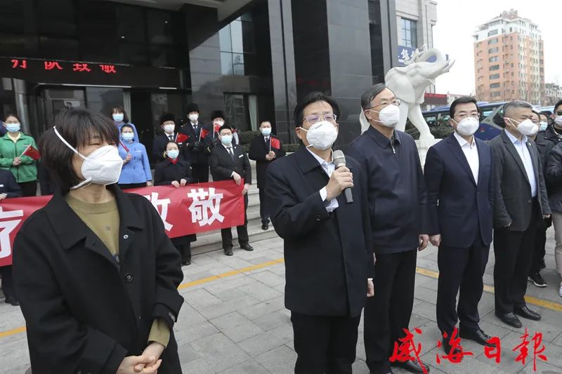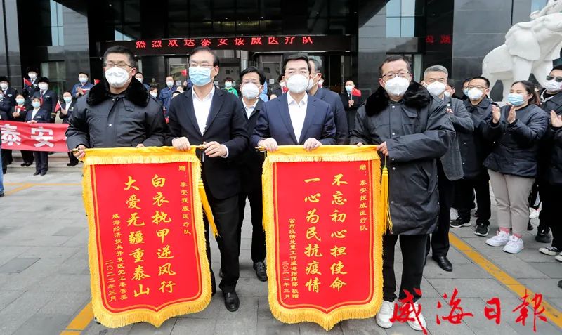 白衣执甲,不负重托;感恩逆行,致敬英雄!经过13天的携手攻坚,3月21日下午,驰援威海的省和兄弟市医疗队圆满完成各项任务,光荣返程。我市在援威医疗队各驻地举行欢送仪式,向白衣战士们致以最崇高的敬意和最诚挚的感谢。副省长孙继业,省政府副秘书长崔建海,省卫生健康委党组副书记、省疾控中心党委书记马立新,市领导张海波、闫剑波、李建等分别参加了泰安和德州援威医疗队欢送仪式。