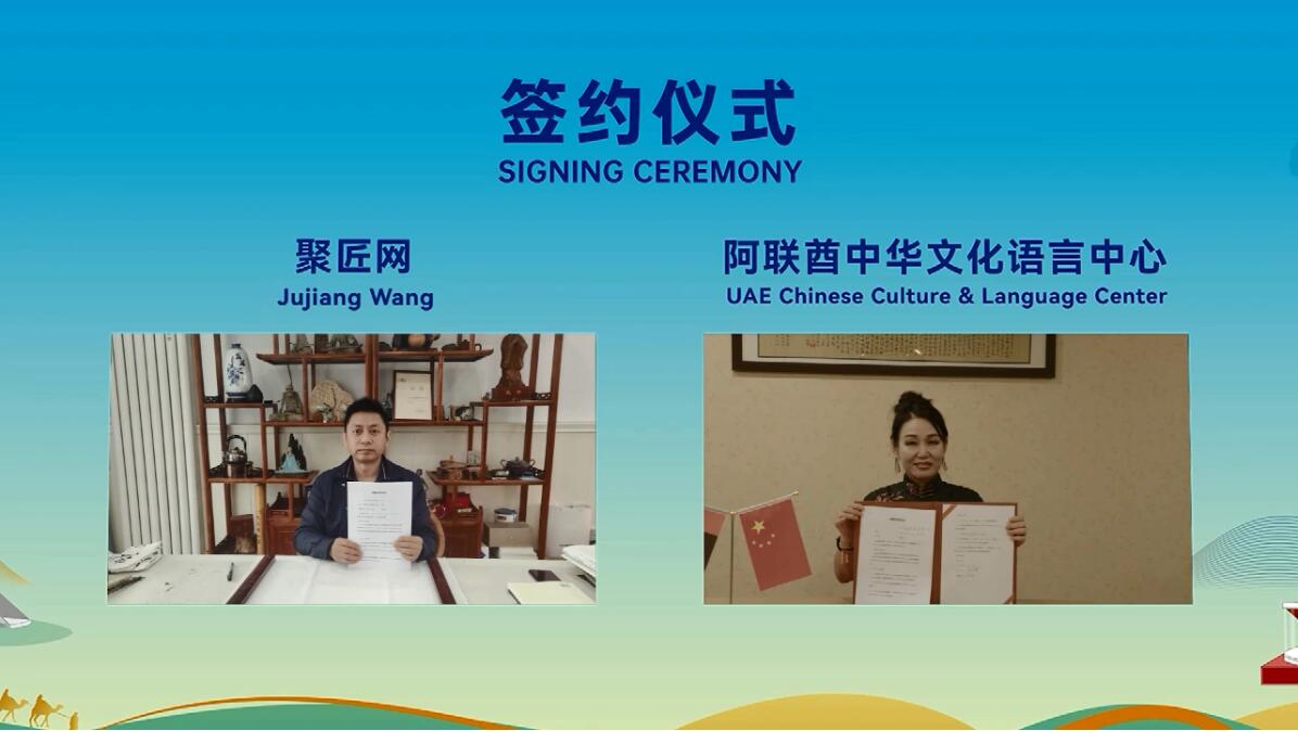 会议举行了签约仪式,济南华侨城实业有限公司与阿联酋海外旅业集团、聚匠网与阿联酋中华文化语言中心、济南市贸促会与阿联酋山东商会、山东中外人才发展有限公司与迪拜Dragon商业经纪公司分别签署了战略合作协议。