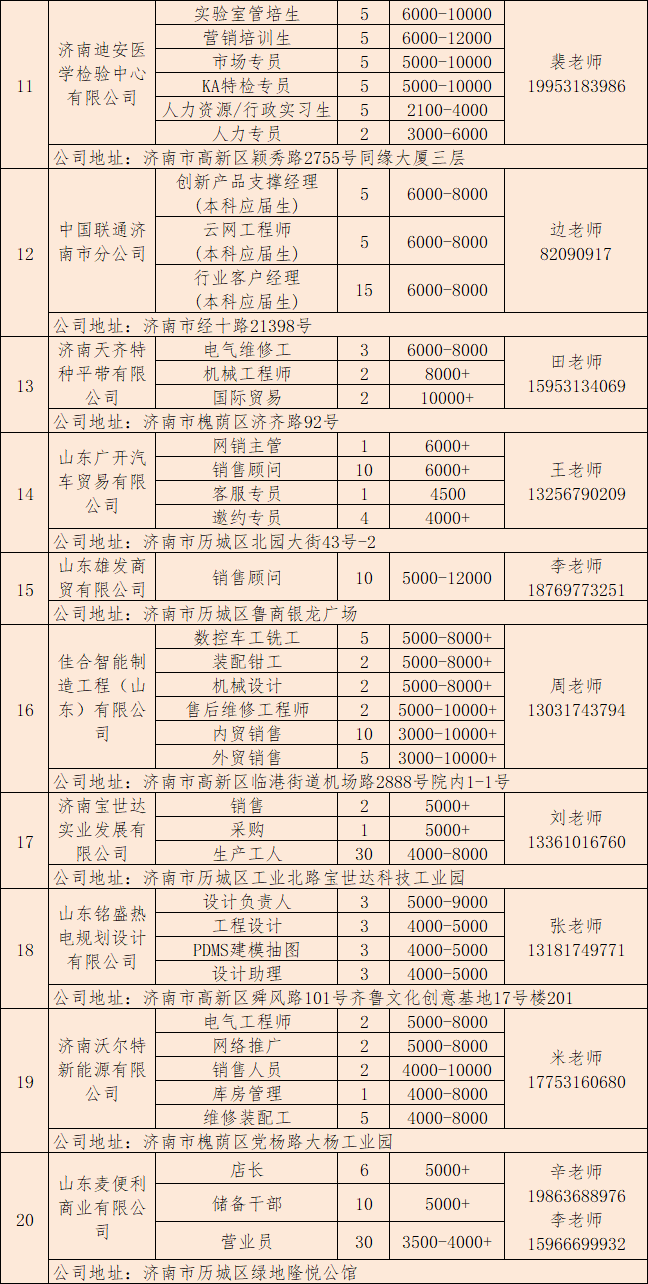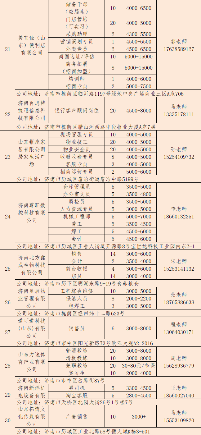为帮助各类求职者尽快实现就业,满足缺工企业用工需求,充分发挥人力资源社会保障部门保企业用工、稳就业形势作用,积极搭建供需对接平台,推动劳动者实现更高质量就业。由济南市人力资源和社会保障局主办,济南市公共就业服务中心承办的“综合场网络招聘会”于3月23日举办。邀请30家企业参与招聘,提供900多个就业岗位,招聘信息详情如下:
