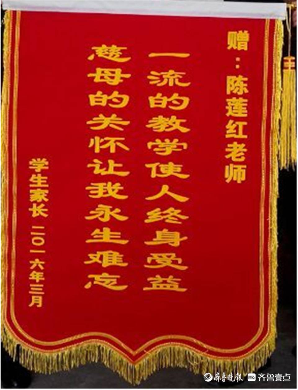 26年来,她热心捐助家庭困难的学生,平日经常自费买礼物奖励进步的学生。学生和家长赠送的锦旗上写道——“一流的教学使人终身受益,慈母的关怀让我永生难忘”。这是对陈老师从教至今最真的写照和最好的褒奖。
