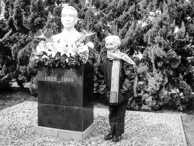 李佩先生晚年在郭永怀墓碑前