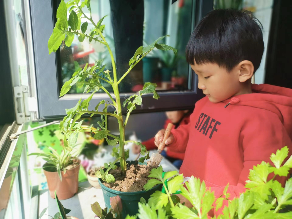 在对植物生长过程的观察中,孩子们也在其中发现、探究并解决问题,体验到照顾小植物带来的成就感。春天来了,愿绿植在阳光雨露下茁壮成长,一起期待更多的美好吧!