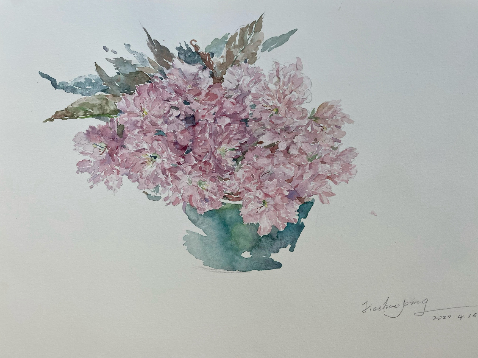 这一年樱花的颜色跟去年不一样,颜色偏了很多的清冷,少了一些温暖,真是年年岁岁花相似,也只是相似罢了。——绍萍 且说且画