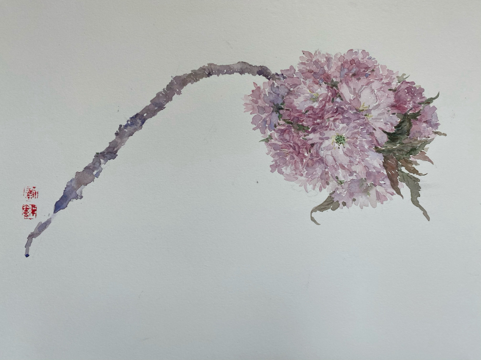 2021年6月,水彩《繁花》、《绣球》入选美国密苏里州水彩协会2021国际评选展览;