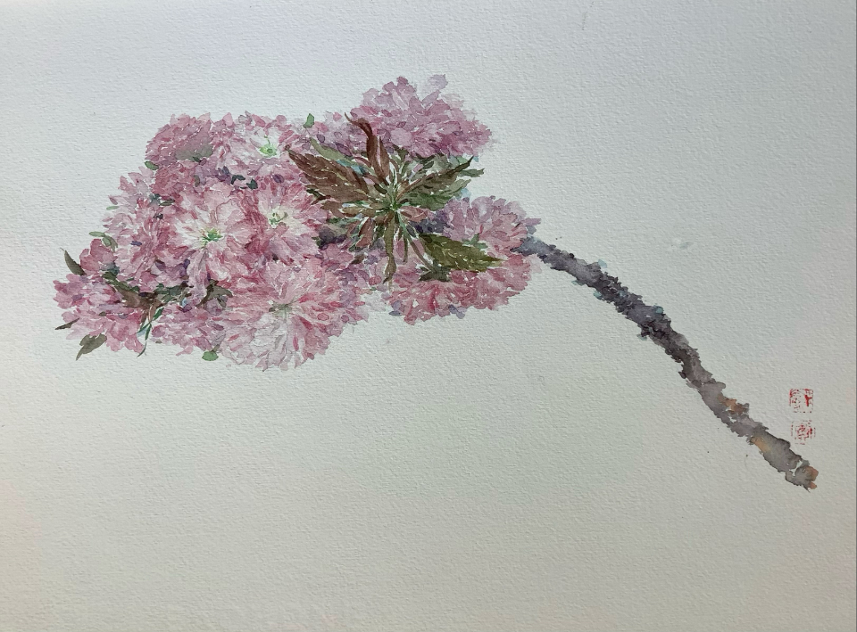 的确,世界是属灵的,去年此时正是疫情严重的时候,我常去家东边的小山上,山是孤寂空灵的,虽满山遍野的花,但说不出来的诡异,樱花的颜色是蓝灰色的,惨淡凄冷,越画心里越觉得悲凉…今年的樱花颜色虽还是有些偏冷,但较之去年已经好了很多,像大病初愈的人,脸色慢慢地回复,有了气血…