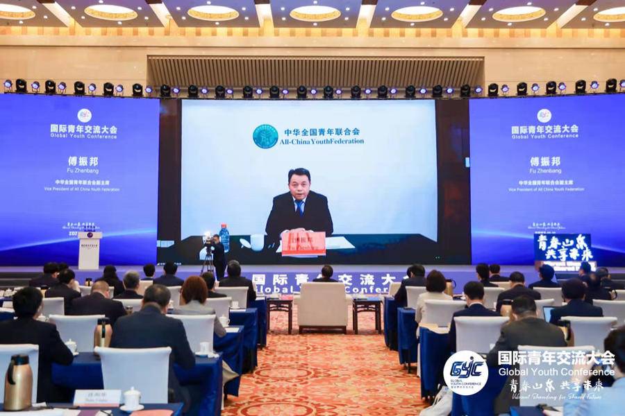 5月13日上午,以“青春山东,共享未来”为主题的国际青年交流大会在济南开幕。开幕式上,中华全国青年联合会副主席傅振邦作视频致辞。
