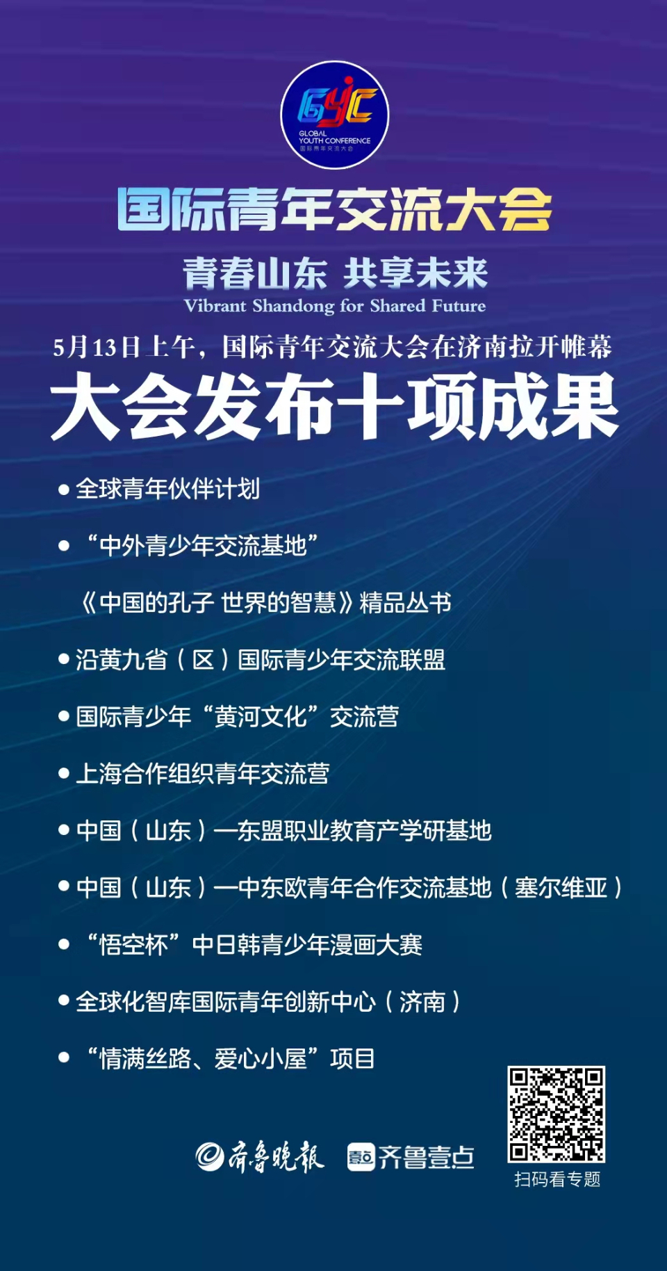 一图读懂|速览!国际青年交流大会发布10项成果 Ramble Shandong漫步山东 2022-05-13 1303 记者 杜亚慧 制图 许晨 帅为 5月13日上午,以“青春山东,共享未来”为主题的国际青年交流大会在济南拉开帷幕。本次国际青年交流大会汇聚青春力量,绽放青年光彩,创新谋划,倾力推出了10项中外青少年交流合作项目。大会现场,10项成果正式发布,看海报一图速览➡ 责任编辑:杜亚慧