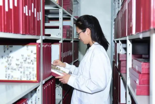 ▲学生在观察蝴蝶标本
