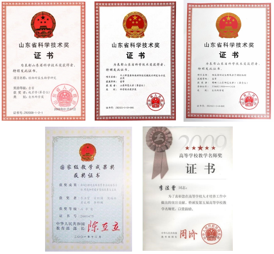 ▲学院获得国家级教学成果奖、山东省科学技术奖一等奖、高等学校教学名师奖等荣誉